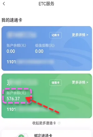 如图,页面显示ETC储值卡账户余额。