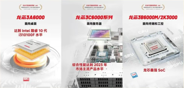 龙芯中科2025年6月发布了新一代服务器CPU 3C6000系列、终端CPU 3B6000M,加上2023年底发布的龙芯3A6000桌面CPU,形成了桌面、服务器和终端三条线路产品的完整系列。