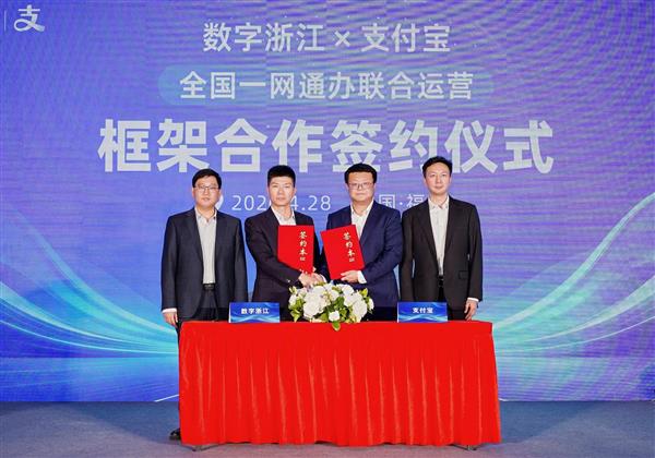 2026年 4 月,数字浙江技术运营有限公司与支付宝在福州正式签署战略合作框架协议。双方将在政务服务全国推广普惠、政务大模型创新应用、线上线下一体化联合运营、政务消息主动服务体系建设、一网通办安全协作、数据要素价值化探索六大领域开展全面深度合作,依托支付宝智能推荐、AI 大模型、大数据分析等前沿技术,把政务服务优秀标杆案例、标准化运营体系与全域便民服务成熟模式向全国普惠推广,打造全国统一的数字化政务服务联合运营体系,推动政务服务从可办、快办向智办、优办、主动办、安全办全面升级,助力数字政府建设提质增效、服务全国民生与产业数智化升级。