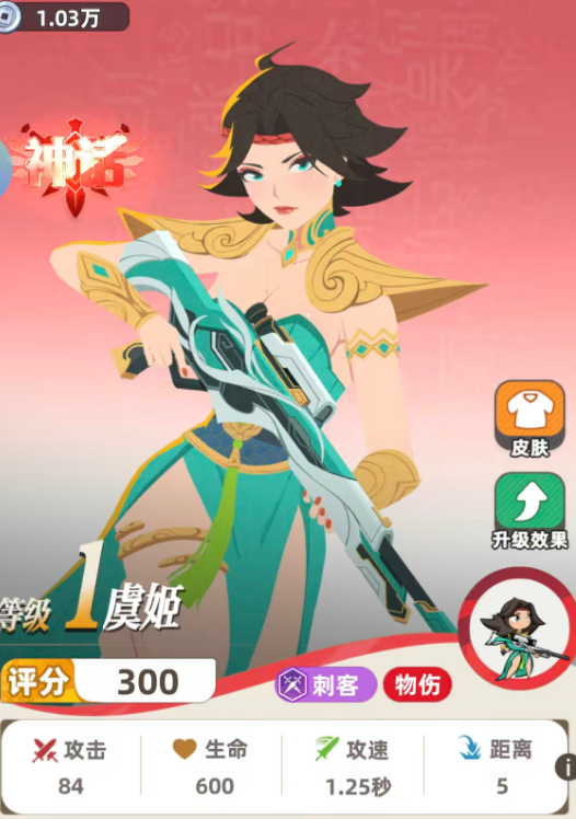 虞姬其实基础属性当中带来的攻速还比较快,而且基础攻击也有不错的数值可以用,另外把她放在阵容里面使用的情况下,大家就要了解她的招式,游戏当中的虞姬攻击已经达到了84的数值,所以目前能够带来这样的数值进行输出,就代表她在刺客效果里面能够带来的基础功能不差,虞姬在攻击敌人的时候,一般是针对的单体敌人,这里不会跳跃到敌人后方,所以大家不用担心靠近敌人之后,如果对面反伤怎么办,因为她这里还是在自身一开始的基础站位上面输出,造成的也是百分百的基础攻击,而后期在天赋得到强化以后,初始的天赋功能在友方触发了足够暴击之后,虞姬会对攻击最高的一名敌人造成攻击能力当中200%的伤害。