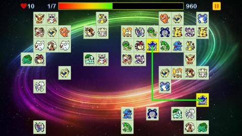 PC经典连连看的移动端复刻手游,游戏完整还原了2002年原版宠物主题连连看的内容和游戏规则,同样是在不超过两次转折的连线情况下完成消除,清空全场图案即可通关,遇到无解布局时系统会自动洗牌,最后系统会根据用时和消除速度进行打分,游戏采用横版布局,支持离线游玩和进度自动保存。
