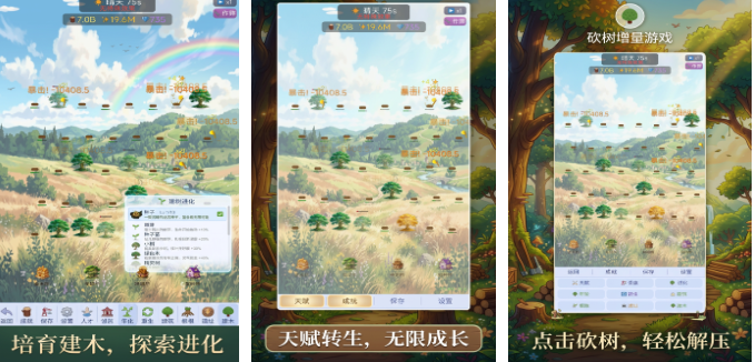 砍树增量主打“轻策略+正向反馈”机制,玩家在有限空间内规划伐木节奏与树苗培育周期,逐步解锁进化树、天赋节点与环境改造模块。游戏强调可持续发展逻辑——砍伐后需及时补种,不同树种对应不同产出速率与资源类型。界面简洁、操作零门槛,但深层成长线丰富,兼具模拟经营与数值养成双重乐趣。