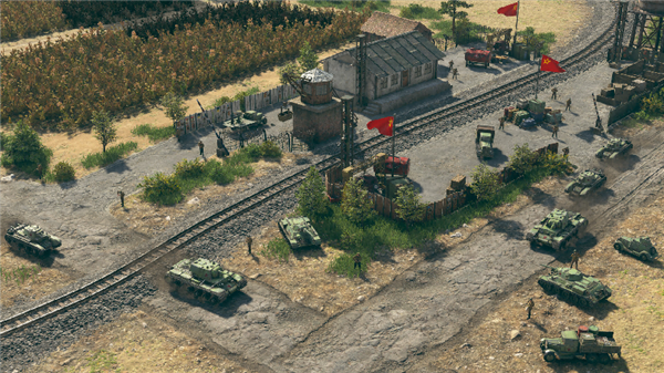 战术自由度得到了前所未有的提升,游戏采用沙盒式任务设计,没有固定的取胜路线,玩家可自由选择战术、单位组合与任务目标,可以集结装甲部队正面强攻,也可派遣侦察兵渗透敌后破坏补给线,还可夺取战地指挥部、补给站、火车站等关键地点,获取弹药、燃料补给或呼叫援军,可玩价值极为丰富。同时,游戏还保留了系列经典的补给机制,弹药、燃料的限制让战场更具真实感:若敌军控制了补给路线,玩家将无法呼叫援军,必须先解放通道才能获得支援;坦克没有燃料会陷入停滞,步兵没有弹药则无法作战。虽然增加了操作复杂度,但这种策略维度正是系列的核心坚守。