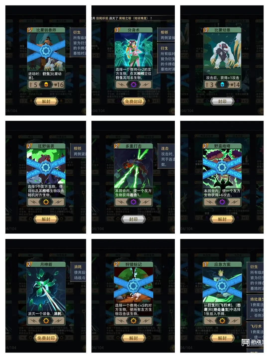 3、装备主拿魔蛇手套/毁灭之斧/幽影飞爪,只拿到一张幼崽的情况下也可以拿生机吊坠,灵魂宝珠保一下比蒙站场,回响权杖也很好用,可以复制多重打击,狂野强袭等卡保证每回合输出。