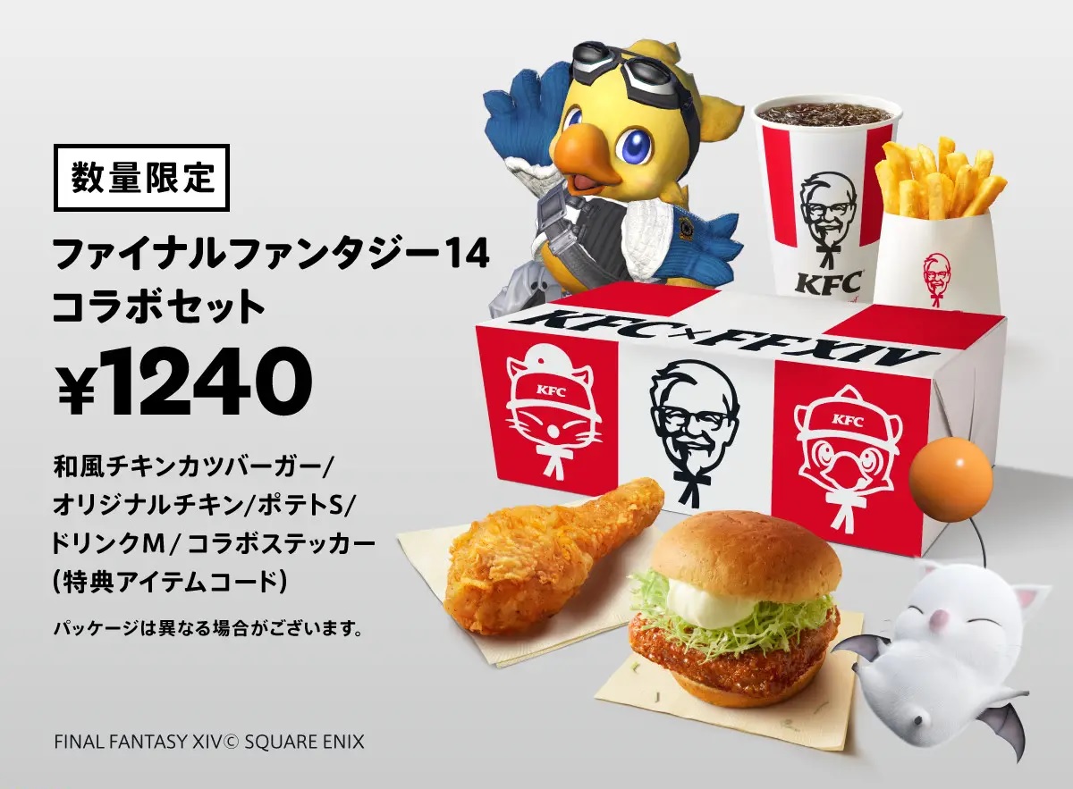 KFC与FF14的联动活动预计于10月4日正式启动,向日本全国范围内的KFC门店限量发售售价为1240日元(约合人民币79元)的《最终幻想14联动套餐》。