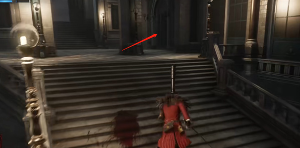 3、进入之后按道路走,看到楼梯就走楼梯,最后可以在图中的房间里找到乘客笔记。