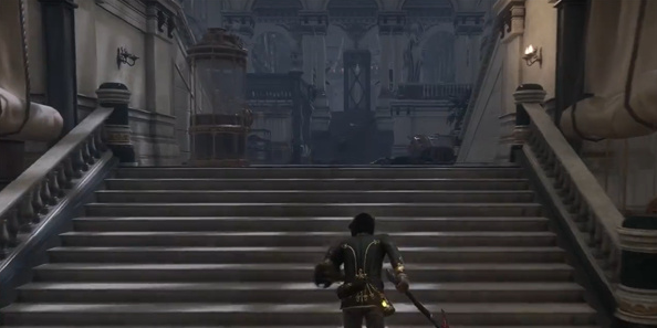 1、首先来到博览会展厅如图所示的地方,一直往前走,在最上面的台子上的宝箱里可以拿到目标物品。