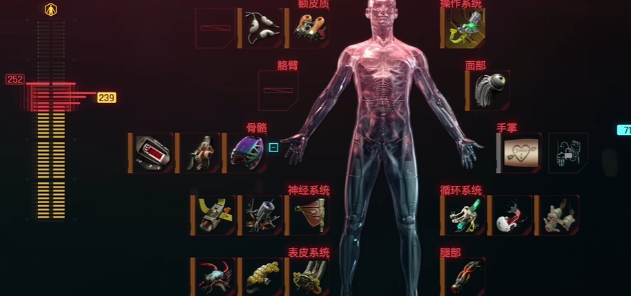 每个义体都有等级和品质之分,高等级的义体可以提供更多的容量。