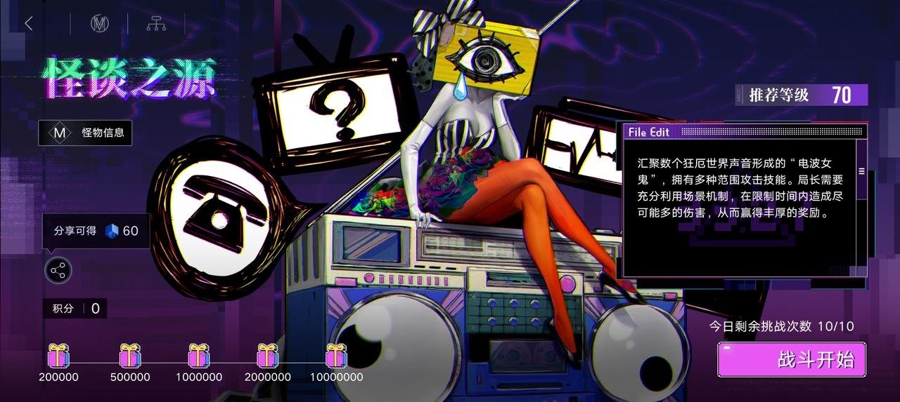 1.10月2日 05:00后,局长可进入“怪谈之源”迎战活动BOSS“调频幽伶”,达到指定积分可获得积分奖励;