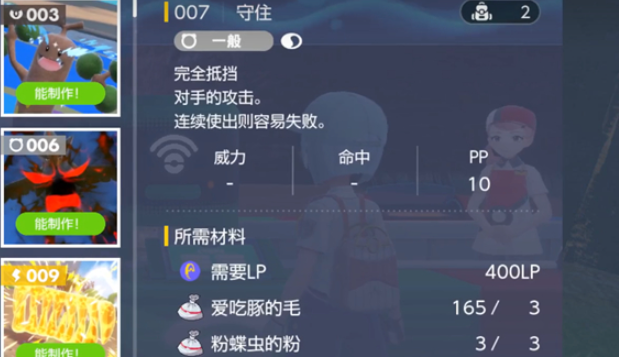 3、守住,就是防御一回合攻击,需要400LP、爱吃豚的毛*3、粉蝶虫的粉*3。