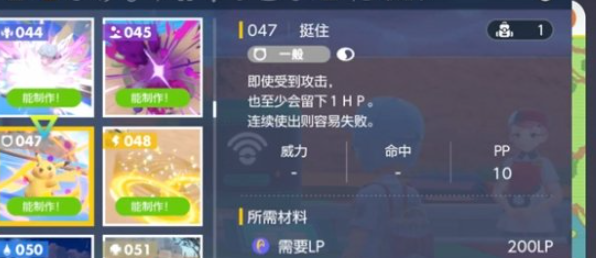 6、挺住,受到攻击至少保留1HP,需要200LP、粉蝶虫的粉*3。
