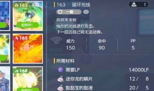 18、破坏光线,150大威力特攻用完休息,需要14000LP、迷你龙的鳞片*8、黏黏宝的黏液*5、肯泰罗的毛*3。