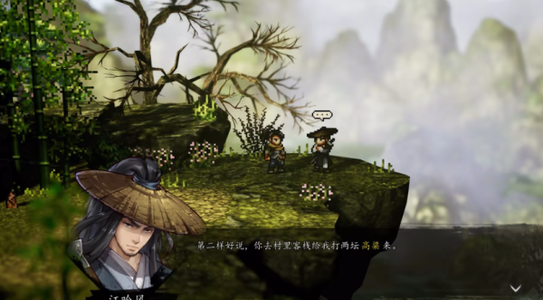 1、在梧桐村最上方的悬崖边找到江吟风触发对话,这时江吟风会让玩家去客栈找高粱酒。