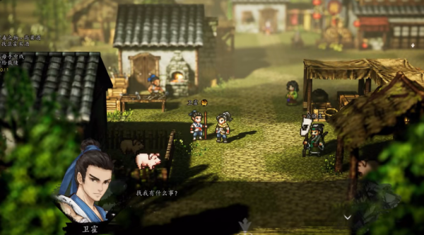 4、出酒馆后左下方就是卫霍的所在地,和他对话后了解到和卫霍好感20以上即可切磋。
