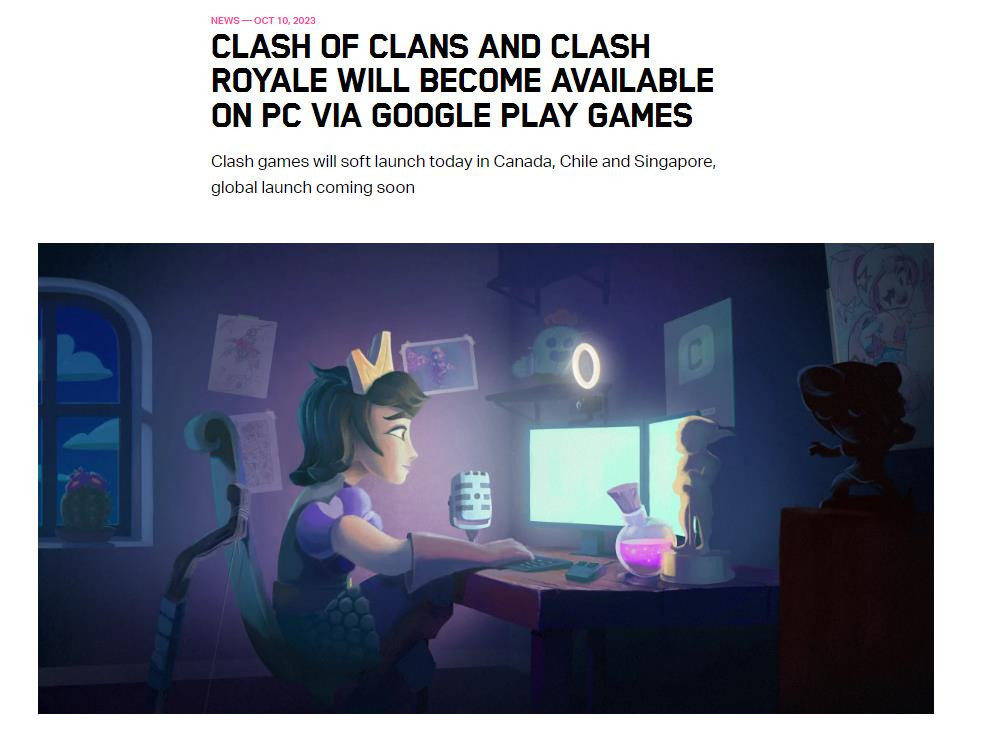 今日(10月11日),移动游戏开发商Supercell宣布《皇室战争》《部落冲突》通过Google Play Games在PC上推出,加拿大、智利、新加坡等地区已上线,后续也将在全球范围内推出,据悉GooglePlay Games版支持鼠标操控并对PC进行适配,优化游戏画质并更好地发挥PC性能。