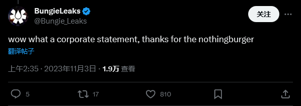 Bungie 在声明中写道:“这是我们工作室史上最艰难的几周之一,因为我们已经与我们尊敬和钦佩的人分离。这一周我们一直在互相支持,包括那些依然在公司,以及不再在工作室的朋友和同事。”