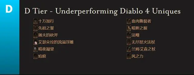 S级暗金都是可以超越BD限制的最强装备,而D级的暗金就不推荐玩家使用了。