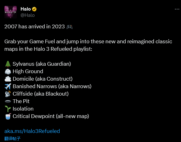 “光环3 Refueled”游戏列表已在 11 月 14 日推出,并将一直持续至 11月 28 日。不过,列表中的地图不会在活动结束后消失,结束后它们将进入游戏的常规地图轮换列表中。