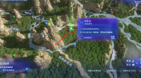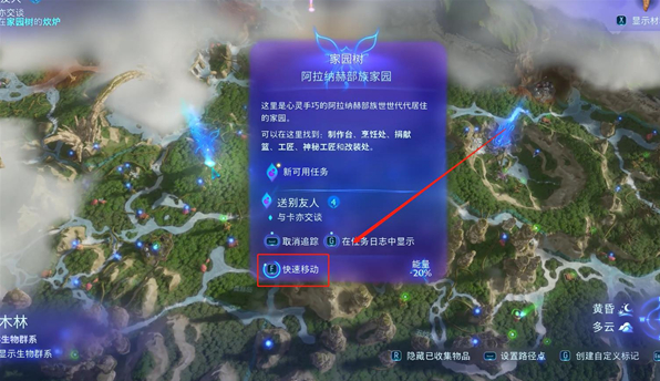 4、玩家可以选中阿拉纳赫部族家园,然后长按F键进行快速移动,直接就传送到任务地点。