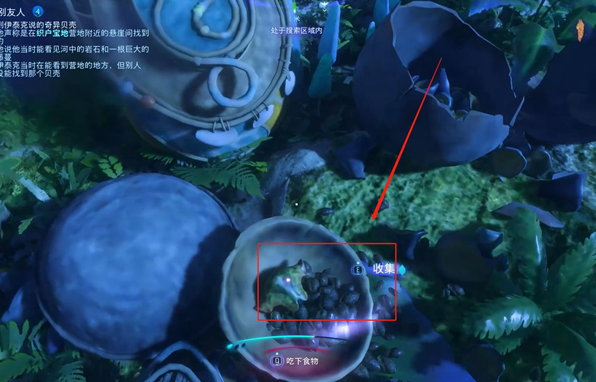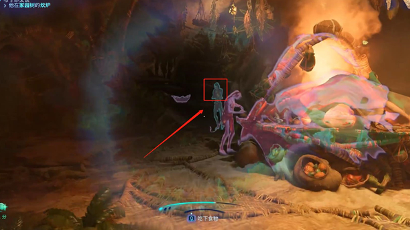 16、爬到悬崖上面之后,玩家能够看到一对破烂,奇异贝壳就在这对破烂中间,玩家按E即可获取。