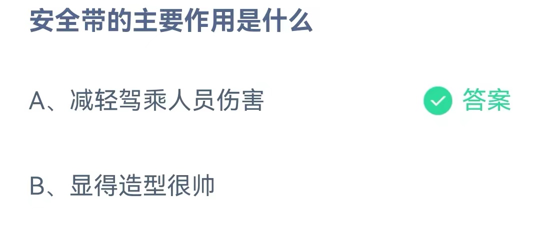 - 《蚂蚁庄园》安全带的主要作用是什么 5月1日答案