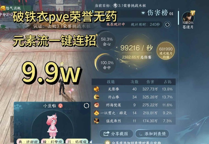 - 逆水寒破铁衣pve荣誉元素流