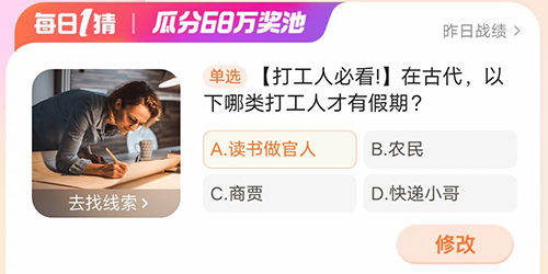 - 淘宝大赢家在古代以下哪类打工人才有假期