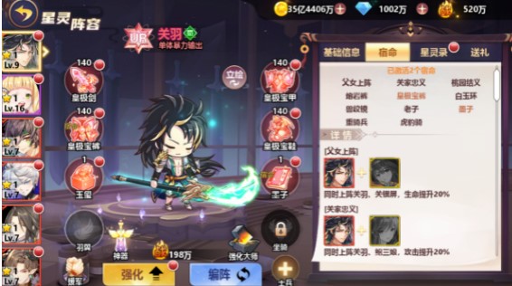 其中3条宿命是通过同时上阵对应的星灵激活。