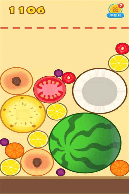 2、相同的说过接触会合成一个更大的水果,最大的就是大西瓜,玩法类似2048;