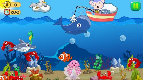 2、只需简单的操作,就可以钓到美丽的鱼、可怕的鲨鱼和大鲸鱼。