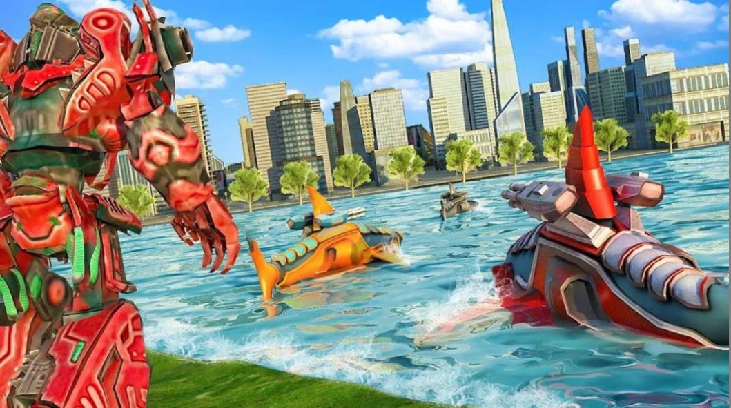 1、这是一款炫酷好玩的机器人探险游戏,玩家在游戏中将变身鲨鱼机器人在城市中冒险;