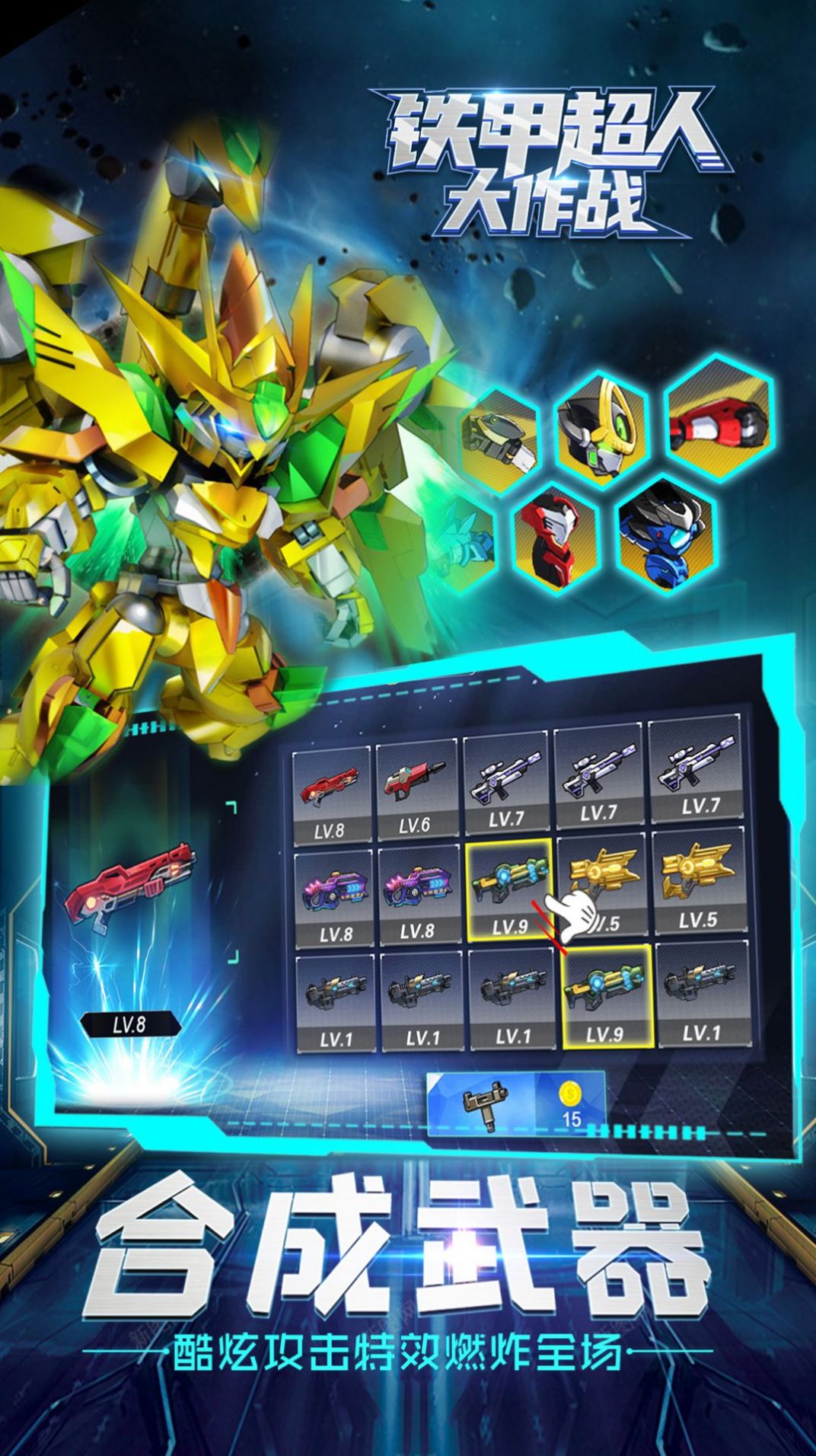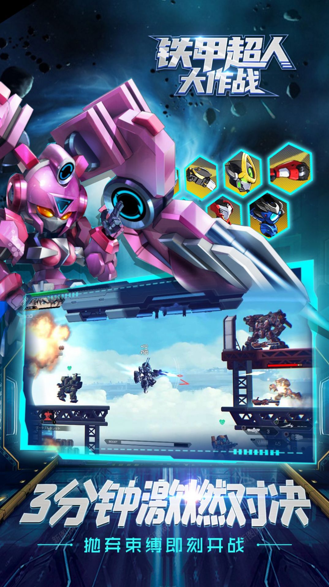 铁甲超人大作战是一款战斗十分紧张的动作游戏,酷炫的竞技挑战玩法,无限制的切磋模式,你随时都能操控自己的机甲开始精彩的作战,丰富的养成方式,各种武器装备任你使用,卡通的世界里,爆发更强的力量,精彩热血的乱斗,赢得更多的胜利。