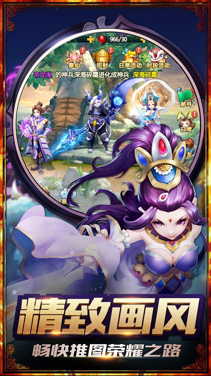 鬼、妖、仙、佛四大种族,三界中最强的数十位神将任君挑选!累积碎片,神将召唤,逐步升阶,迈向最强!令心仪的神将登上三界巅峰,谁能问鼎!