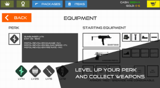 2、商店中可以使用金币来解锁更多的武器装备,只有强力的武器才能够帮助你生还。