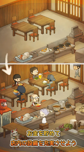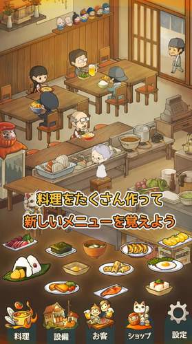 2.在游戏中老奶奶为形形色色的食客制作料理,获得金币。单一商品重复制作能够提升料理等级从而解锁新的料理。
