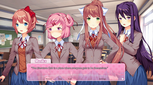 5.紧接着,扮演游戏向导的“不可攻略”角色Monika,开始如AI觉醒一般逆向攻略玩家,并把剩余的其他两名“竞争者”也从游戏世界删除,制造出一个只有玩家和Monika的游戏空间,不停地向玩家倾吐她的爱意,并永远循环下去。