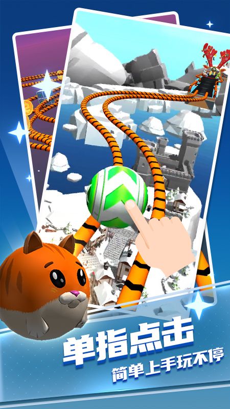 1.每一个关卡中有着不一样的赛道设计,大家需要单指点击小球不断的冲刺,需要掌握冲刺的方向,千万不要从赛道中掉落下去。