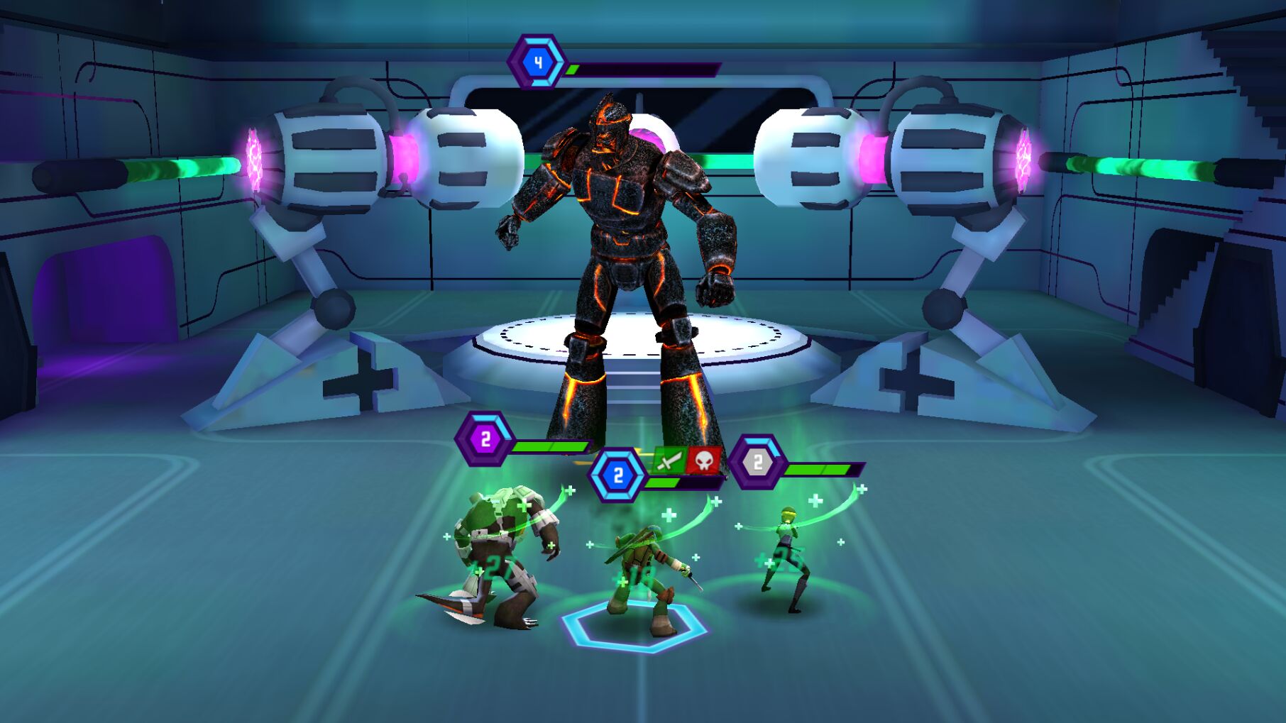 C.这是首次能够以忍者神龟好友… 或敌人的身份和克朗决斗!收集并以虎掌、摇滚万岁、咆勃等更多角色来进行游戏。创造出具策略性的团队来迎战克朗!