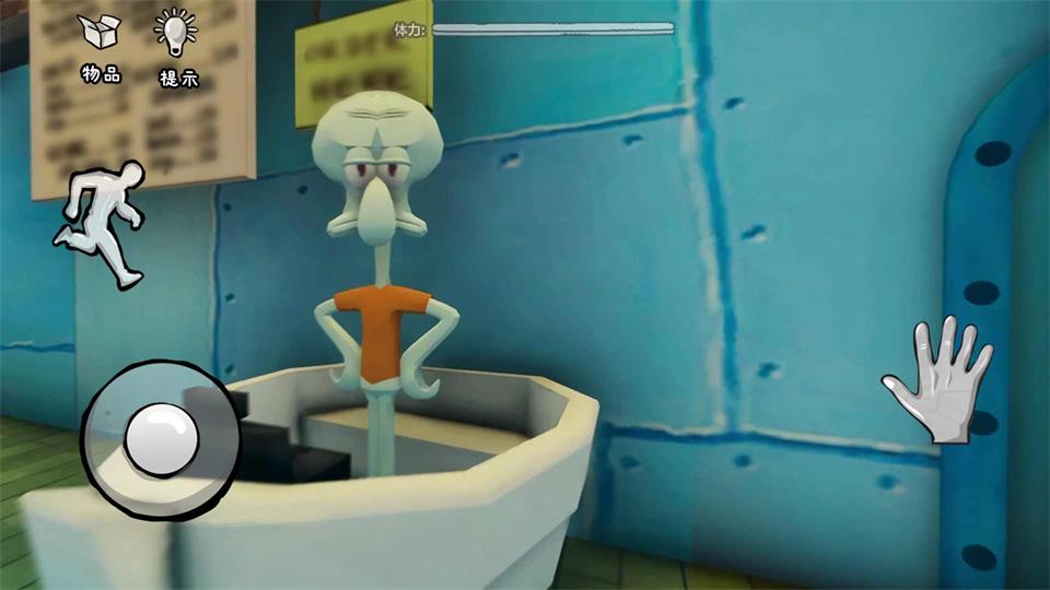 恐怖海绵宝宝是一款有趣的探险游戏,有趣的可怕游戏通常有优异的情节和情景界面,让玩家真正获得最理想的代入感,在游戏中,玩家操作自己角色顺利的从饭店逃走,在这里,令人害怕的海绵鲍勃会攻击你,能够使用各种各样游戏游戏道具成功过关。