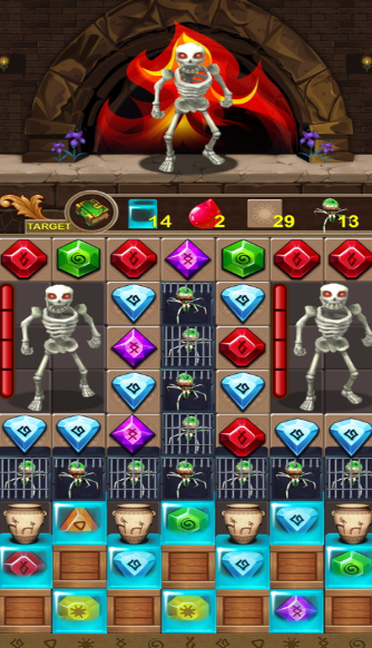 与传统的三消手游不同,在手游里游戏者需要考虑消除的路径和方案,防止剩余的单颗宝石被消除。