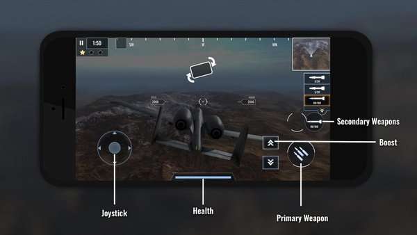 战斗机飞行员重火是款超级有趣的战斗机射击手游,驾驶帅气的战斗机在空中飞行,装载各种强大的炮弹,在不同的地图之间进行战斗,执行各种战机任务等等,非常的好玩,赶快下载试试吧!