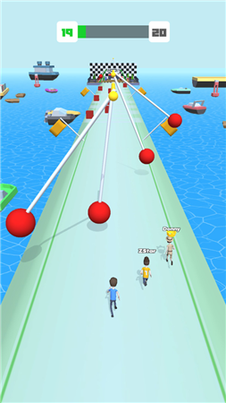 水上竞赛作为一款颜色清新、画风简洁的休闲竞技类手游。在游戏里玩家们将一起在水上展开激烈的角逐,然后一起向着终点奔跑。在奔跑途中有重重关卡,在游戏里玩家必须依靠敏捷的身手和出色的反应力突破障碍,争取第一个抵达终点。我们可以在游戏里体验到精彩刺激的追逐乐趣,操作起来非常的简单。