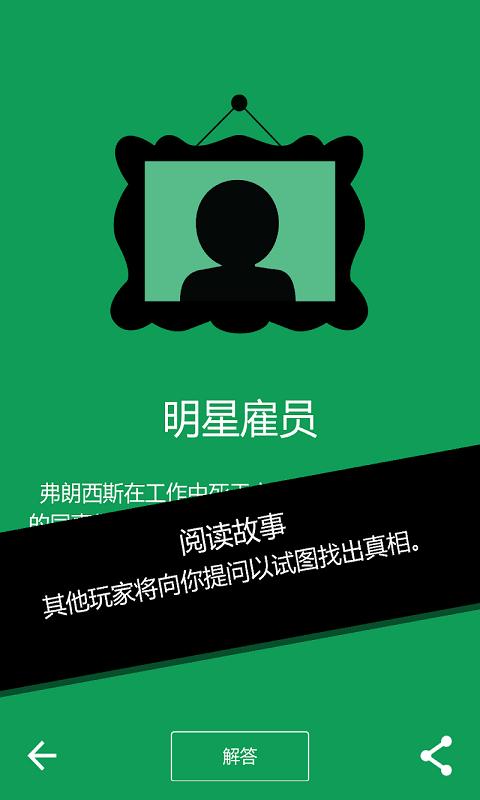 故事的脑回路都非常的大,不要以正常的思维去解谜,一定要往偏的地方想,每位用户**流提问,直到找出正确的答案;