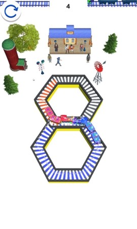 欢乐火车大冒险点击屏幕启动彩色列车,利用最佳时机给列车跑道上色