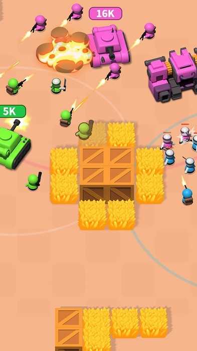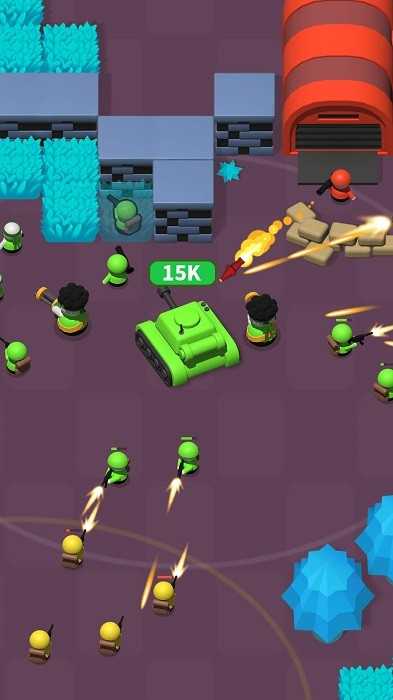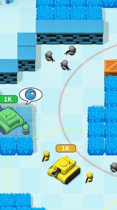 2、用户可以借用障碍物躲避敌人的子弹,或利用障碍物推开敌人,迫使敌人坦克漏出破绽,从而完成击杀,比较考验技巧。