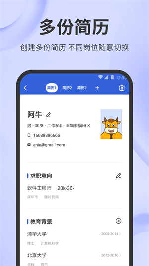 2、简历信息可以编辑得非常清晰,看起来非常顺眼,可以满足各行业求职者的需求;