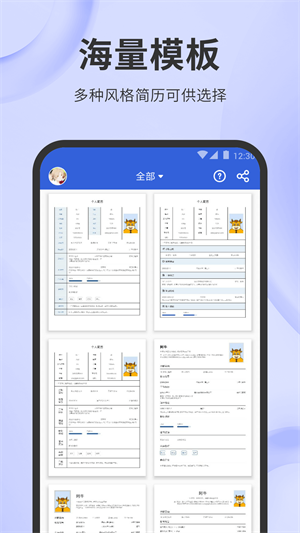 1、上面有各种简历模板,可以满足您更多的制作需求,让您快速创建自己的简历。