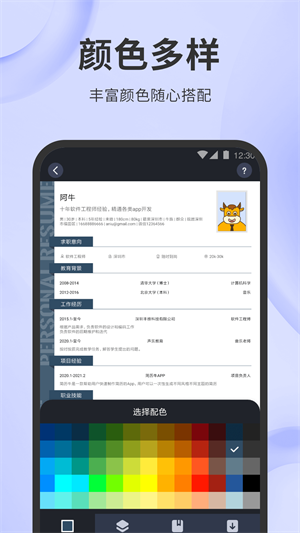 3、使用在线模板创建各种有效的简历,使您可以在编辑过程中选择自己喜欢的颜色。
