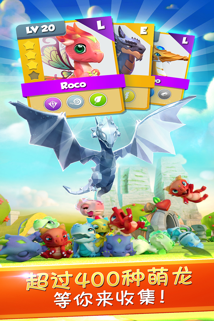 1、带领你的龙队统治岛屿。参加更多的战斗,扩大你的可爱龙的收藏,提高你的技能,并争夺更高级的联赛。