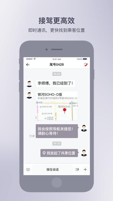 3、高效接送:实时通讯,精准播报用户实时位置,让用户更快速、更准确地被接送,给用户立刻就到的汽车级体验。